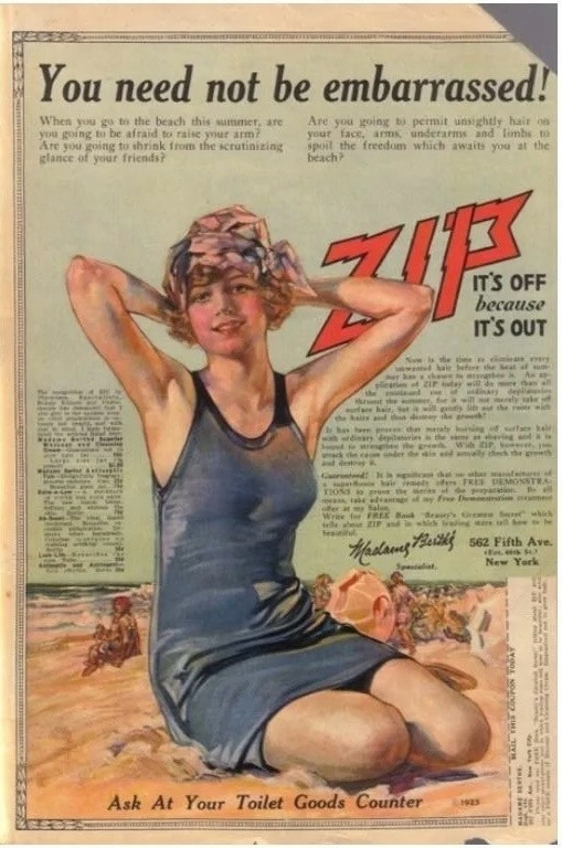 Табу на женскую волосатость окончательно сформировалось в Европе к концу 19-го века. Один из факторов, оказавших на это непосредственное влияние - индустрия моды. В это время стали популярными платья и блузки, которые теперь открывали и подмышки. На это, в свою очередь, быстро отреагировала индустрия красоты. Компании, выпускавшие бритвы и кремы для бритья, стали пропагандировать красоту гладкого женского тела и внушать женщинам, что небритые участки тела, которые видно - это некрасиво и даже стыдно. Реклама убеждала, что волосатые ноги и подмышки не только несовместимы с женственностью, но и могут стать причиной развода.